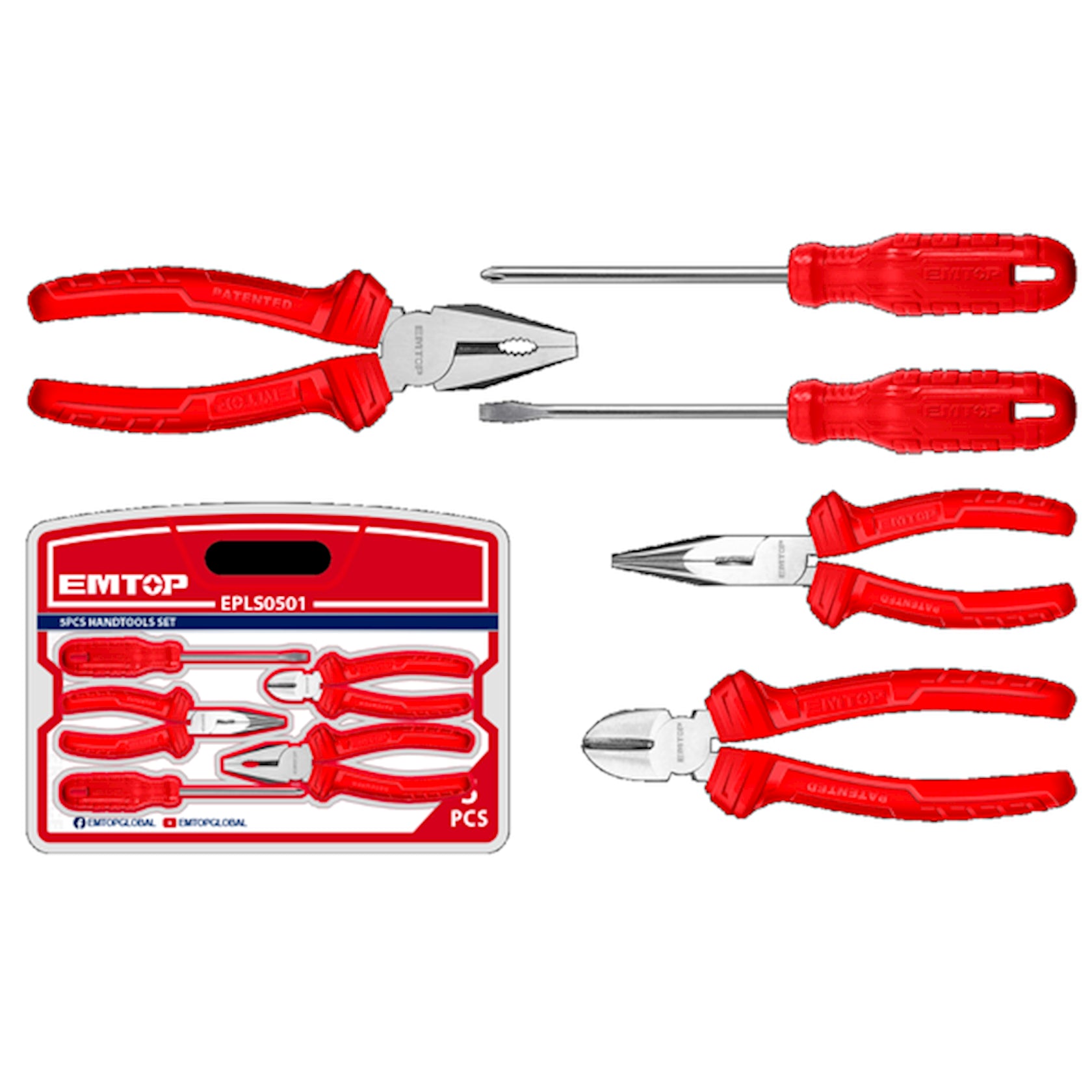 Emtop Ölçü: 1 ədəd 7" kombinə edilmiş kəlbətin 1 ədəd 6" uzunburun kəlbətin 1 ədəd 6" diaqonal kəsici kəlbətin 1 ədəd PH1*100 tornavida 1 ədəd SL5.5*100 tornavida Tək rəngli dəstək Sürüşən kartda qablaşdırılmış