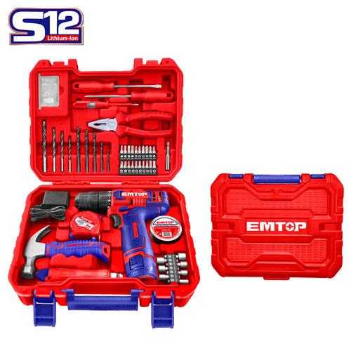 Emtop 88 ədədlik məişət alətləri dəsti Dəstə daxildir: 1 ədəd 12V Litium-İon naqilsiz burğu 1.5Ah batareya ilə 1 ədəd batareya paketi ilə 1 ədəd şarj cihazı ilə Şarj gərginliyi: 220V-240V~50/60Hz 1 ədəd SL5.5x100 tornavida 1 ədəd PH1x100 tornavida 1 ədəd 7" kombinə edilmiş pəncə 1 ədəd 8Oz mini caynaq çəkici 1 ədəd test qələmi (Test gərginliyi: 100-500VAC) 1 ədəd 3M polad ölçü lentı 1 ədəd 9mm kəsici bıçaq 1 ədəd PVC izolyasiya lentı 7 ədəd Power yivləri 5mm, 6mm, 7mm, 8mm, 9mm, 10mm, 11mm (Material: CR-V) 5 ədəd bükmə dəlik açma dəsti (2mm, 3mm, 4mm, 5mm, 6mm) 4 ədəd taxta dəlik açma dəsti (4mm, 5mm, 6mm, 8mm) 1 ədəd maqnitli bit tutacağı 20 ədəd tornavida bitləri: SL3, SL4, SL5, SL6, PH0, PH1, PH2, PH3, PZ0, PZ1, PZ2, PZ3, T10, T15, T20, T30, H3, H4, H5, H6 20 ədəd vint (10 ədəd * ST3.5, 10 ədəd * ST4) 20 ədəd plastik tıxac (10 ədəd * 6mm, 10 ədəd * 5mm) BMC ilə qablaşdırılmış