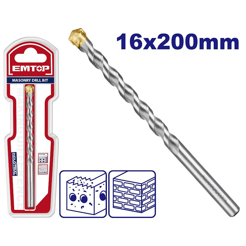 Emtop 16 x 200Yüksək keyfiyyətli TCT tipiXrom alaşımlı polad şaftYüksək tutumlu beton və qranit üçünİki qatlı blisterdə qablaşdırılmış