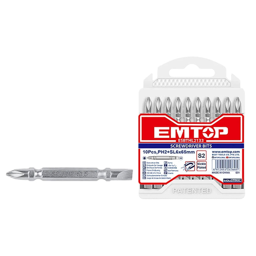 Emtop PH2+SL6.065mm, 10 ədəd/setS2 sənaye poladıİki uclu bitNikel örtüklü maqnitPlastik qutuda qablaşdırılmış