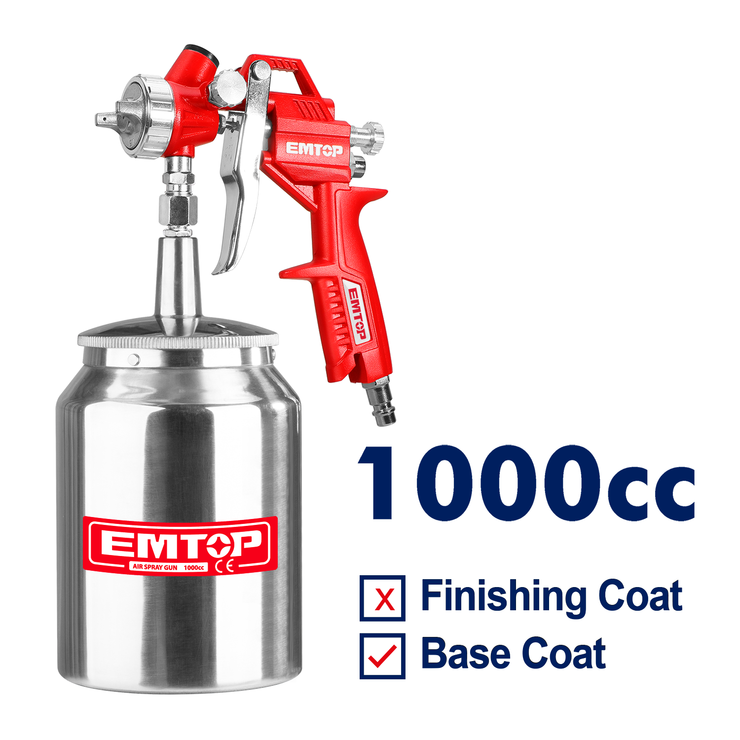 Emtop Standart dəlmə: 1.5mm Nümunə eni: 140-180mm Rəng tutumu: 1000cc Əsas qat üçün uyğundur Avropa tipli bağlantı, ABŞ tipli bağlantı, Nitto tipli bağlantı və İtaliya tipli bağlantı ilə İstəyə bağlı dəlmə: 1.2-1.8mm İşləmə təzyiqi: 3-4bar Hava istehlakı: 4.2-7.1cfm (119-200l/min) Rəngli qutuda qablaşdırılmış