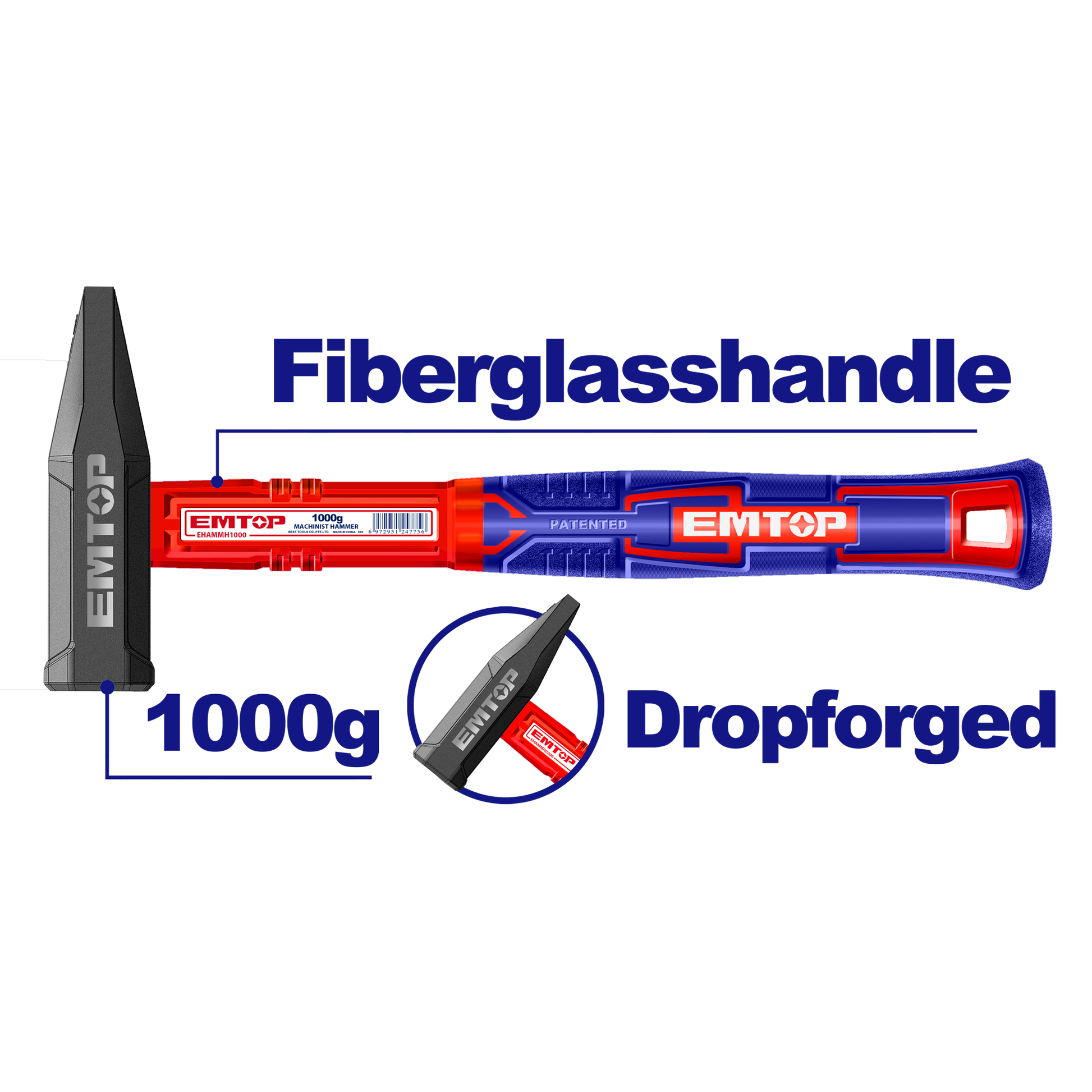 Çəkisi: 1000gBaş hissə: Düşürülərək döyülmüş çəkic başıMaterial: İsti müalicədən keçmiş 45# karbon poladıSap: Unikal dizaynlı şüşə lifli sapQablaşdırma: Etiketlə