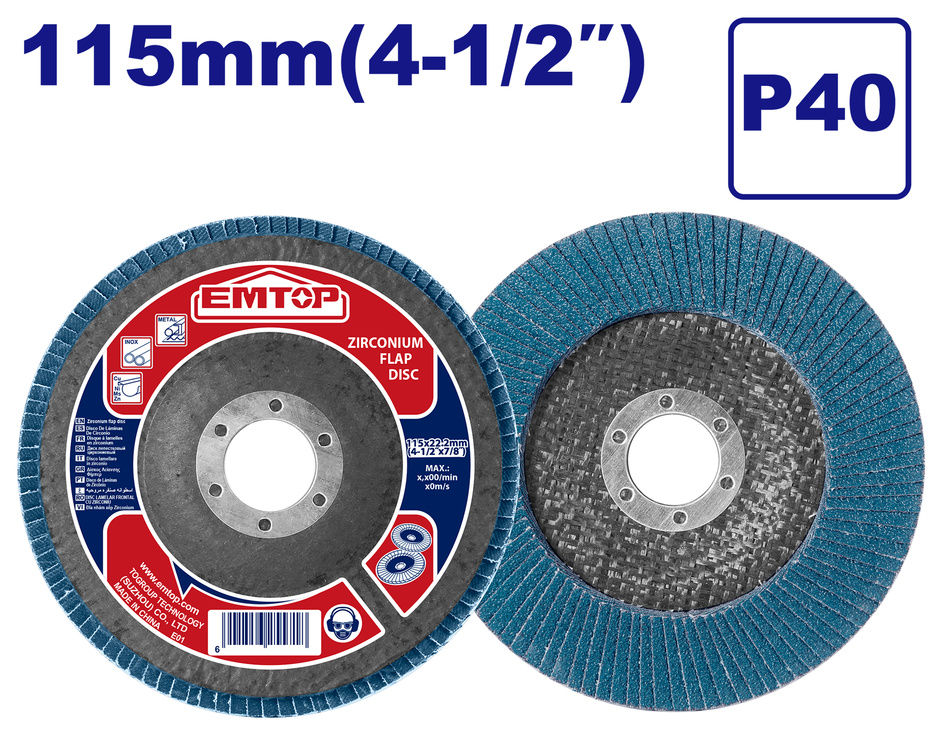 Ölçü: 115×22mm (4-1/2'' × 7/8'')Qranul ölçüsü: P40Xüsusilə paslanmayan polad üçün uyğundurMaterial: zirkonium oksid aşındırıcıMPA təsdiqlidirQablaşdırma: etiketlə