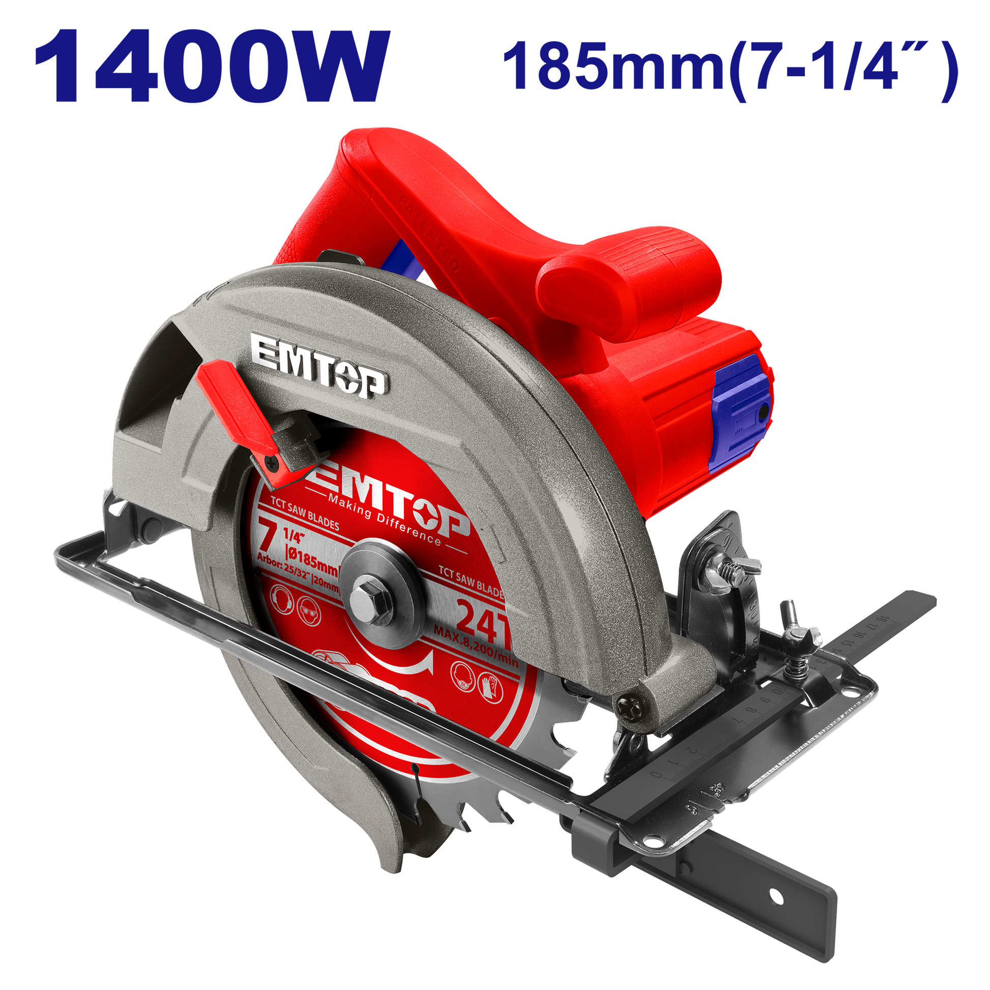 Emtop Gərginlik: 220-240V~50/60Hz Giriş gücü: 1400W Yüksüz sürət: 4800 dövr/dəq Bıçaq diametri: 185x20mm Kəsmə tutumu: 45 dərəcə: 45mm 90 dərəcə: 65mm Tənzimlənən kəsmə dərinliyi Tənzimlənən bucaqla kəsmə 1 ədəd 185mm bıçaqla 1 dəst əlavə karbon fırçalarla Karton qutuda qablaşdırılmış