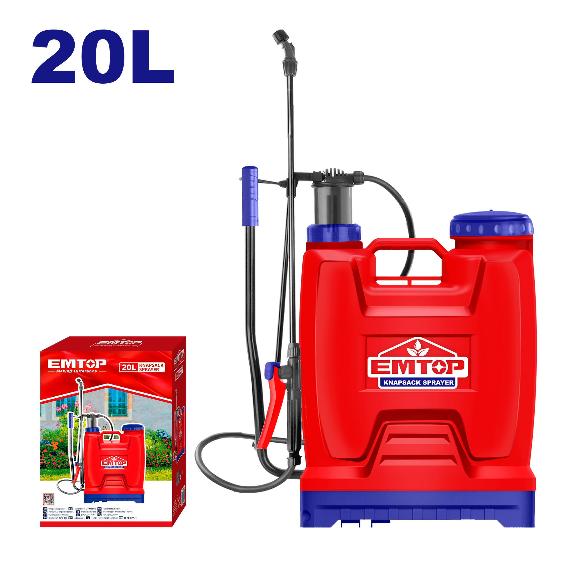 20L Y tetik və lifli şüşə lanz Təzyiq: 4.5BAR Tənzimlənən ucluq, yaydan dumanlıya qədər Böyük sahələrin çiləmə üçün xüsusi olaraq hazırlanmış böyük konteyner Rəngli qutuda qablaşdırılmış