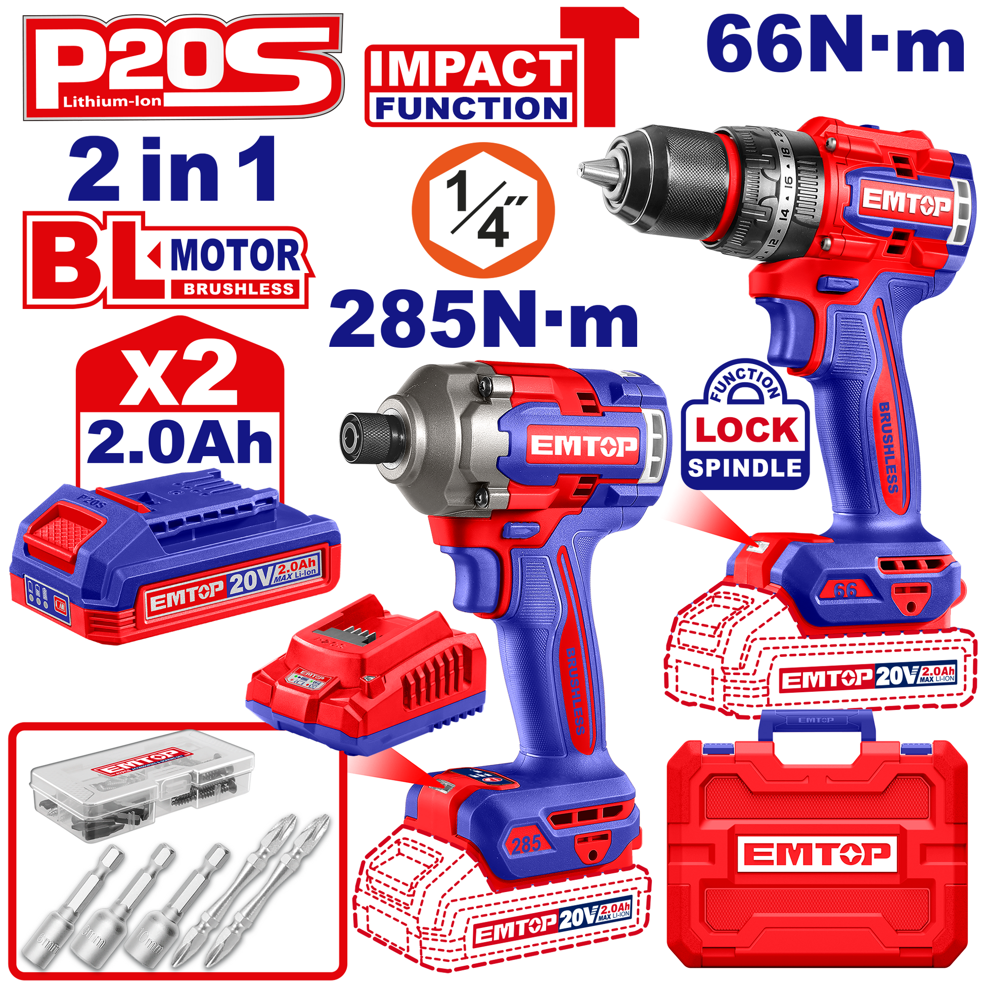 Gərginlik: 20V 1 ədəd Kompakt fırçasız batareyalı zərbəli drel (ECIDL206681) ilə1 ədəd Batareyalı zərbəli vida açan (ECIRL20281) ilə Kompakt fırçasız batareyalı zərbəli drel (ECIDL206681):Fırçasız motorBoş dövrə sürəti: 0-500/0-2000rpmMaksimum zərbə sayı: 30000bpmMaksimum fırlanma momenti: 66NmMetal başlıqBaşlıq tutumu: 13mmFırlanma tənzimləmələri: 22+1+1Mexaniki 2 sürətli dişliMil bağlama funksiyasıİnteqrasiya edilmiş LED işıq Batareyalı zərbəli vida açan (ECIRL20281):Fırçasız motorHeksa başlıq: 6.35mmBoş dövrə sürəti: 0-1600/0-1900/0-2600rpmZərbə sayı: 0-2100/0-2500/0-2900bpmMaksimum fırlanma momenti: 285Nm Daxildir:1 ədəd 20V şarj cihazı (EFCR20200)Gərginlik: 220-240V~50/60Hz2 ədəd 2.0Ah batareya paketi (EBPK20011)47 ədəd aksesuar2 ədəd vida ucu3 ədəd bolt açma başlığıDaşıma çantası ilə qablaşdırılıb
