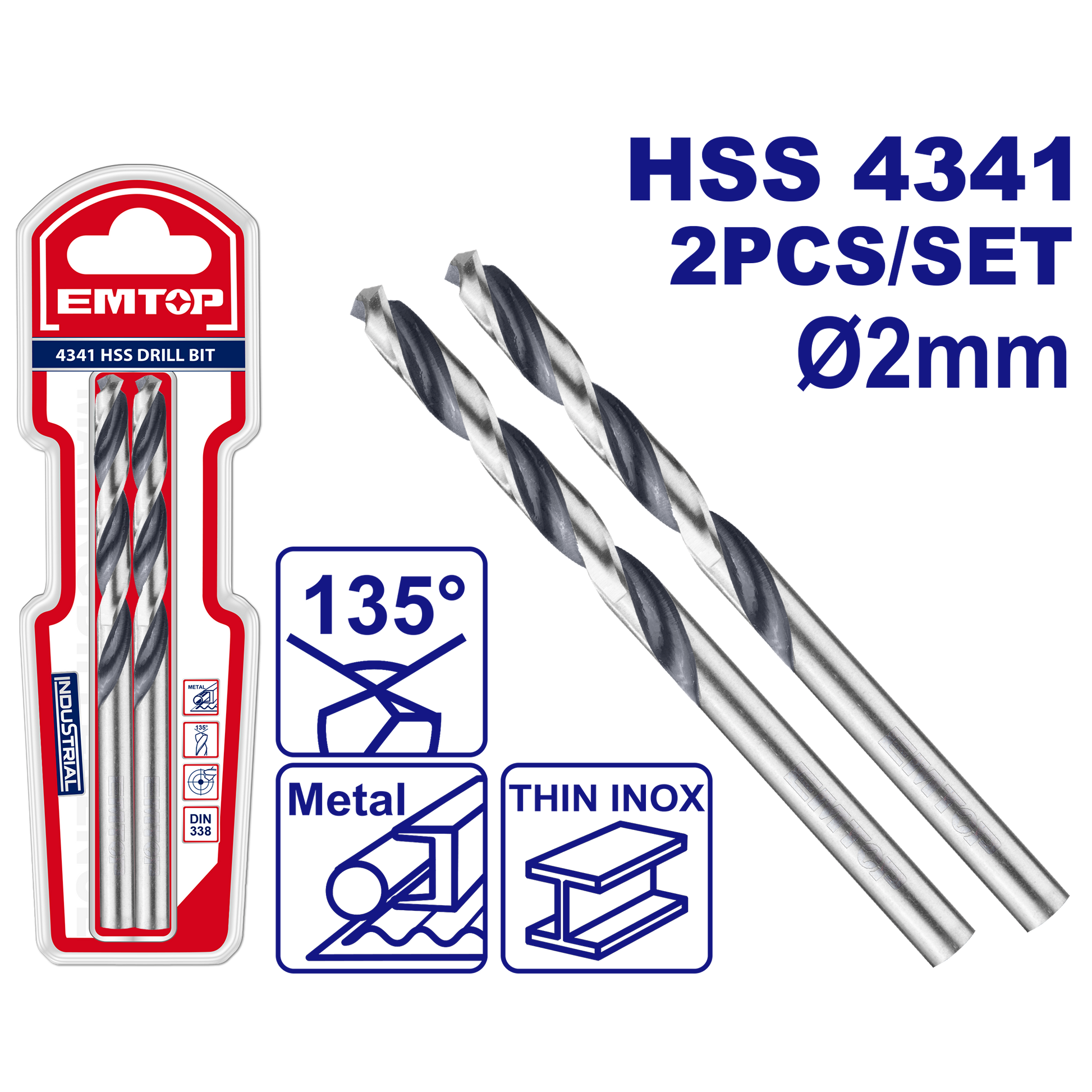 HSS 4341 Ölçü: 2mm 2 ədəd/set 135° İkiqat blister qablaşdırmada
