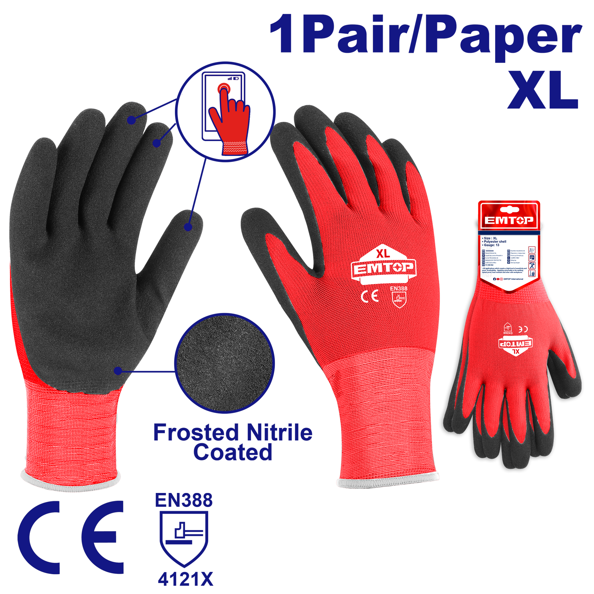 Ölçü: XLİçlik Materialı: Polyester ipKaplama Materialı / Bitmə: Nitril dondurulmuş kaplamaÇəkilər: 15Qoruma səviyyəsi: 4121X1 cüt/paper Qablaşdırma: Paper cardİstifadə sahəsi: Neft mühiti (az neft) işçiləri və s.Nitril kaplanmış palma: Hamarlıq və sərt tekstura palma bitməsiBarmaq ucları: Sensor ekran istifadə oluna bilərQablaşdırma: Paper card