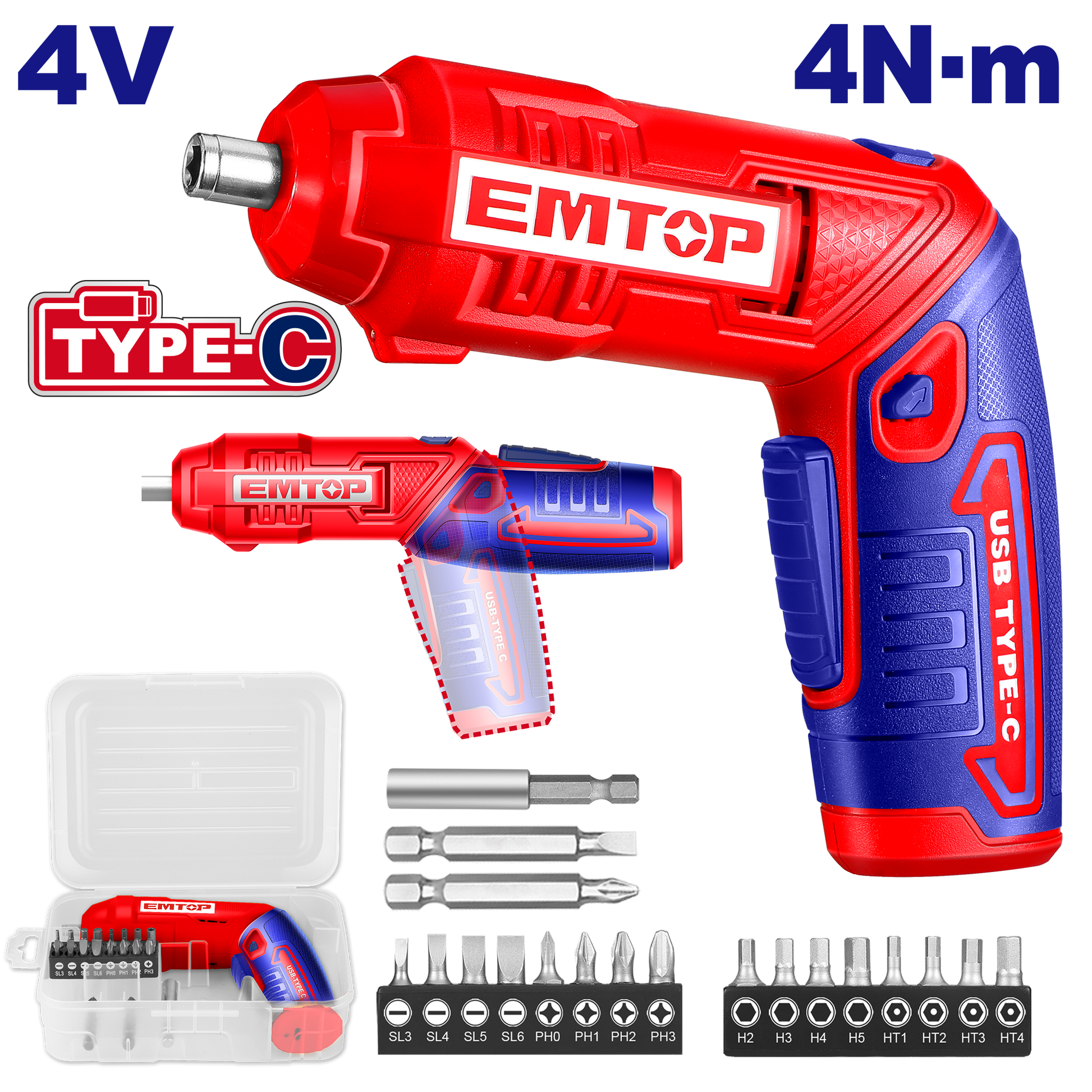 Emtop Gərginlik: 4VHex dərə: 1/4"Boş vəziyyətdə dövriyyə: 240rpmMaksimum tork: 4N·mİki mövqedə tənzimlənən tutacaqŞarj USB type-C kabeli vasitəsilə (kabel ayrıca satılır)İntegrasiya olunmuş işıqDaxildir:16 ədəd 25mm Cr-V ucluq + tutucu2 ədəd 50mm Cr-V ucluq + tutucu1 ədəd birləşdiriciPlastik qutuda qablaşdırılmış