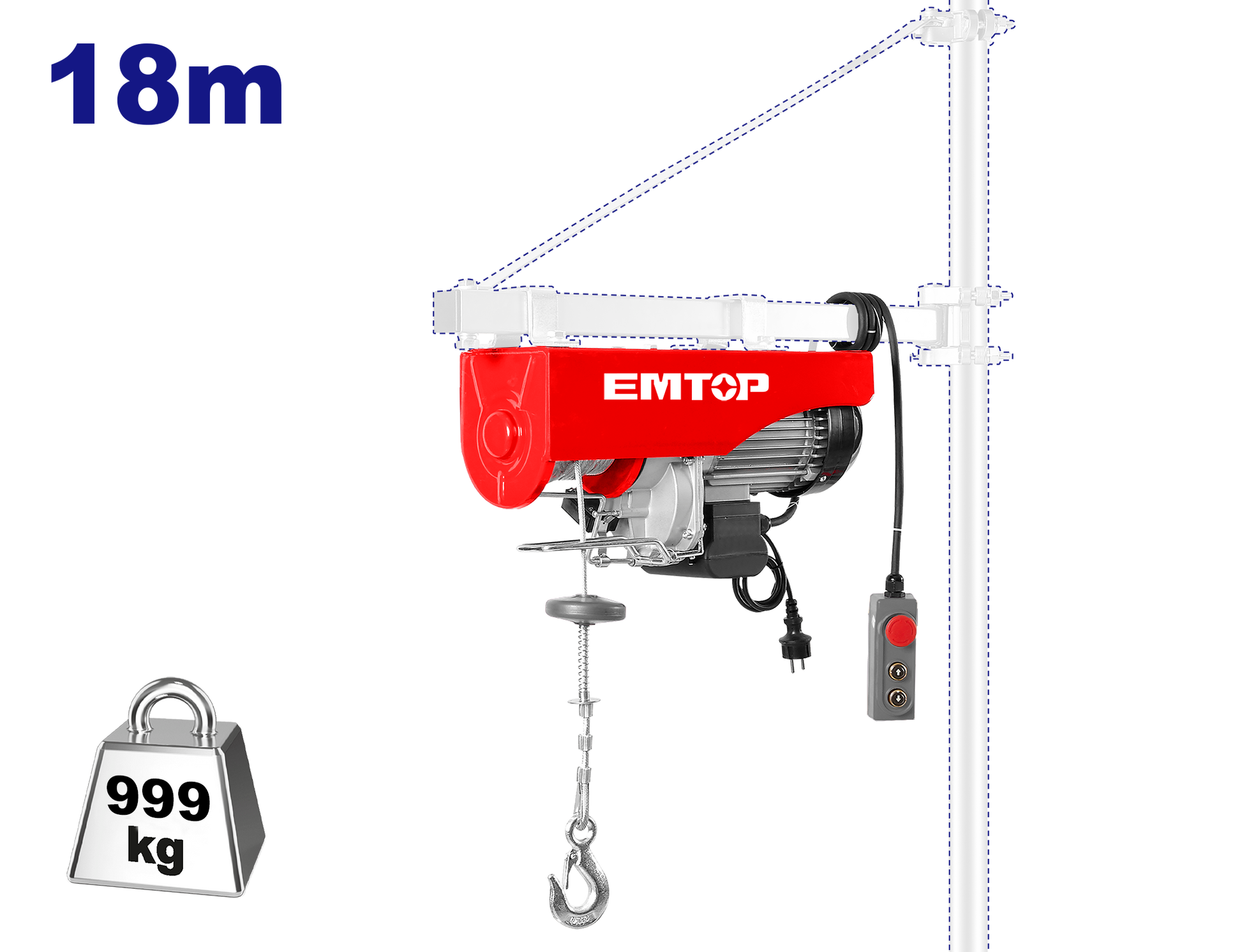 Gərginlik: 220-240V~50Hz Giriş gücü: 1600W Qaldırma çəkisi: 500 kq (Tək xətt), 999 kq (İki xətt) Qaldırma hündürlüyü: 18 m (Tək xətt), 9 m (İki xətt) Qaldırma sürəti: 8 m/dəq (Tək xətt), 4 m/dəq (İki xətt) Təcili dayandırma düyməsi İstilik qoruma terminalı Qoruma sinfi: IP54 Qablaşdırma: Karton qutu