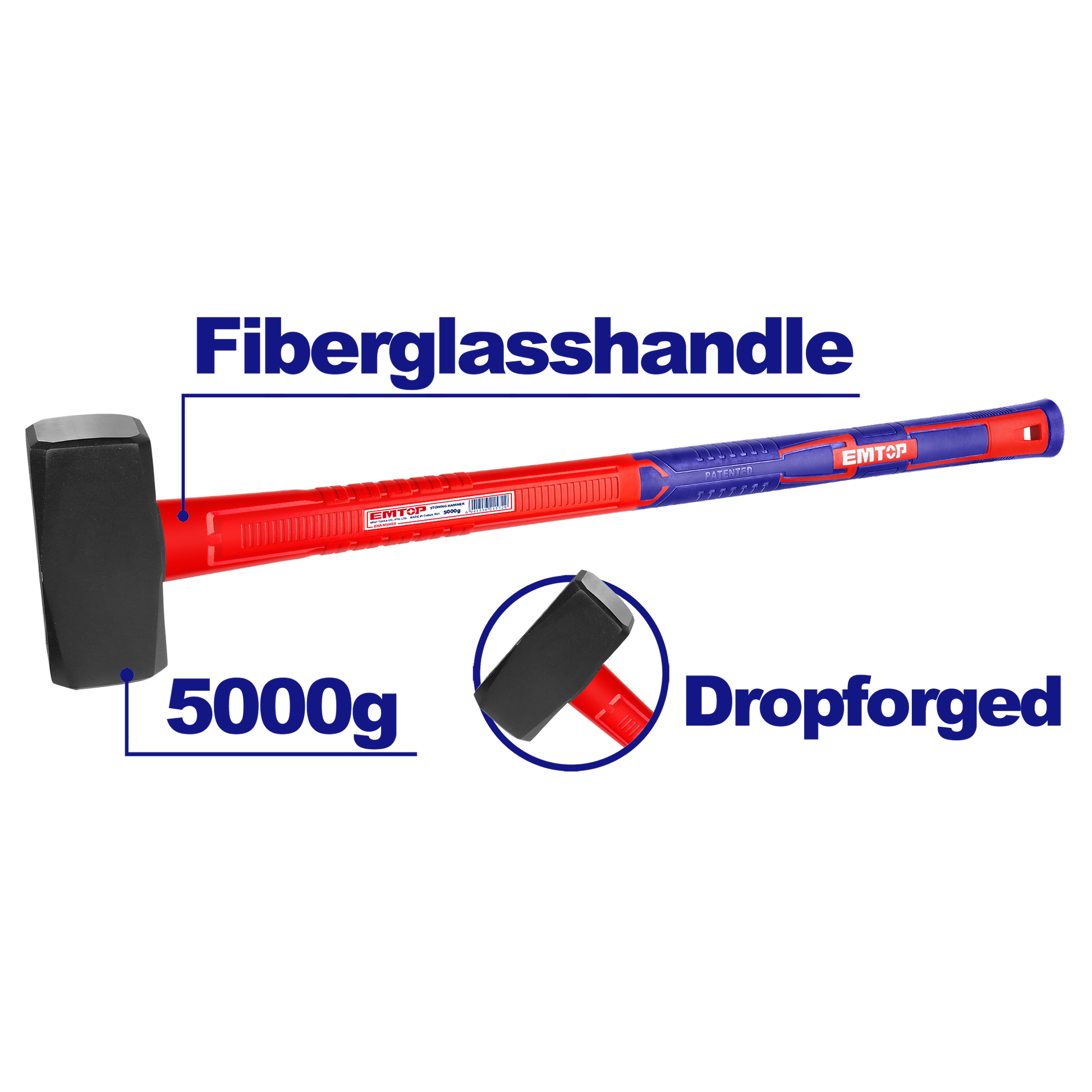 Emtop Çəki: 5 kq Qaynaqla döyülmüş yumruq başlığı İstiliklə müalicə olunmuş, 45# karbon polad Unikal dizaynlı 900 mm fiberglass tutacaq Etiket ilə paketlənmişdir.