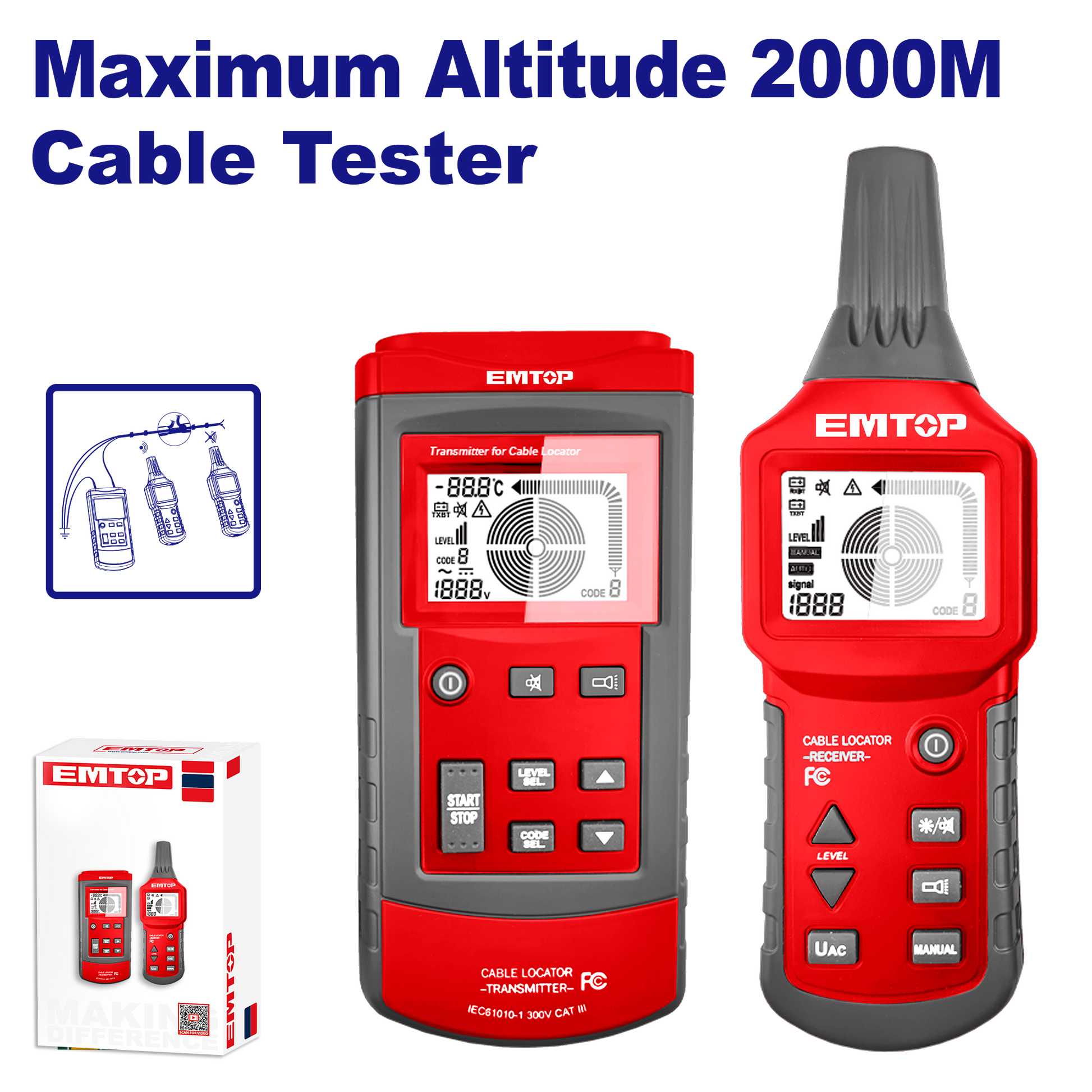 Daxildir: 1 ədəd transmitter və 1 ədəd receiverMaksimum qəbul hündürlüyü: 2000mİzləme dərinliyi (tək dövr xətli): 2.5m-ə qədərDC/AC gərginlik: 12~400VNCVTemperatur ölçümü2 ədəd 9V 6F22 batareya iləQablaşdırma: Rəngli qutuda