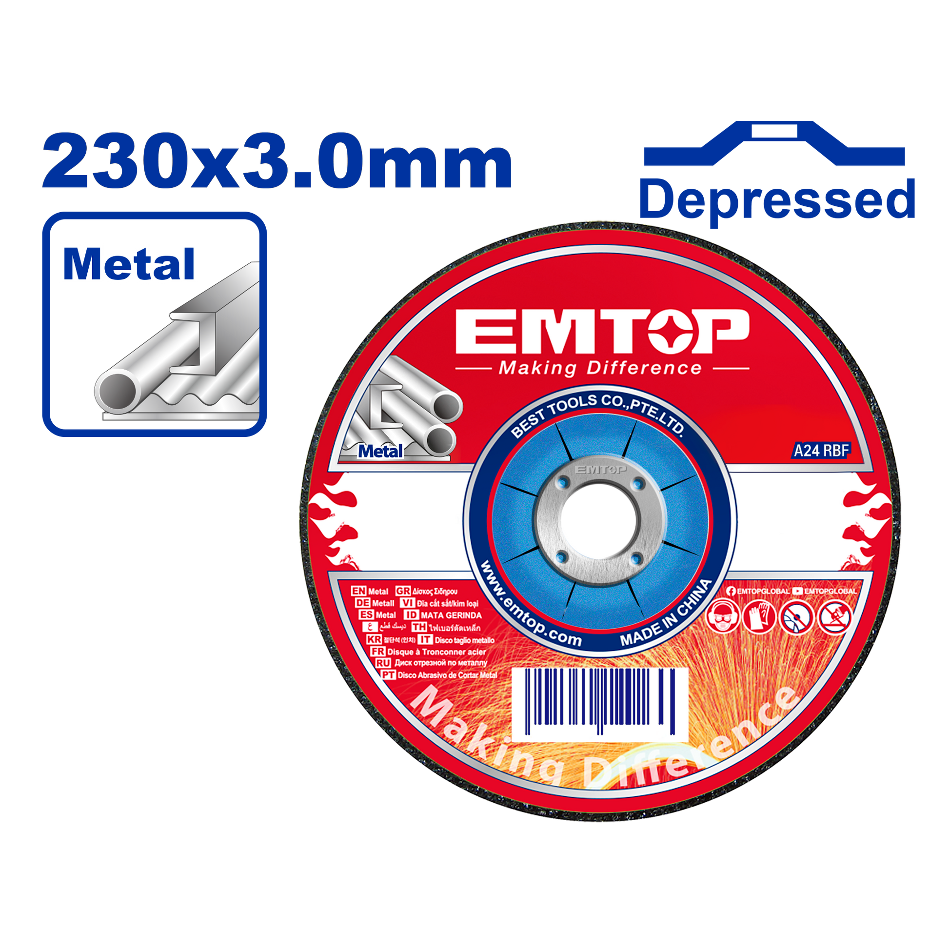 Emtop 230mm(9") X 3.0mm(1/8") X 22.2mm(7/8") Çökük mərkəzli Metal üçün kəsmə diski 25 ədəd/karton Etiketlə qablaşdırılıb