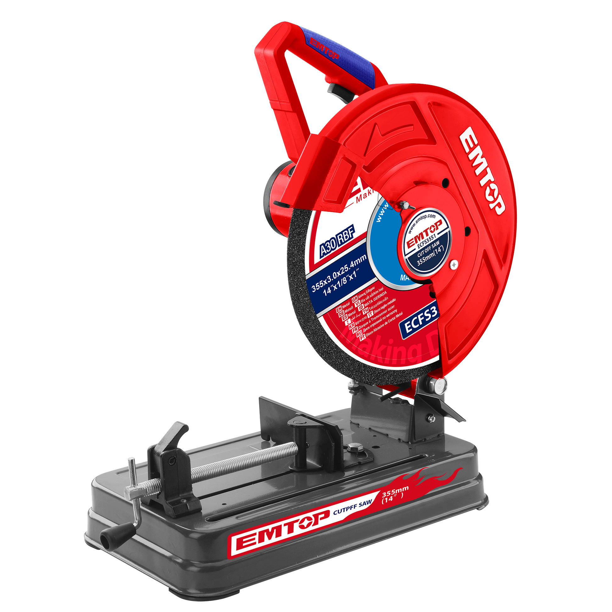 Emtop Gərginlik: 220-240V~50/60Hz Nominal güc: 2350W İşləmə diskinin ölçüsü: 355mmx25.4mm İşə salma sürəti: 3800rpm Maksimum kəsmə qabiliyyəti: Dairəvi boruda: 100mm Kvadrat poladda: 100mmx100mm Dikdörtgendə: 120mmx100mm Maksimum kəsmə poladı: 50mm 1 dəst əlavə karbon fırçası ilə 1 ədəd 355mm kəsmə diski ilə Rəngli qutuda qablaşdırılmış