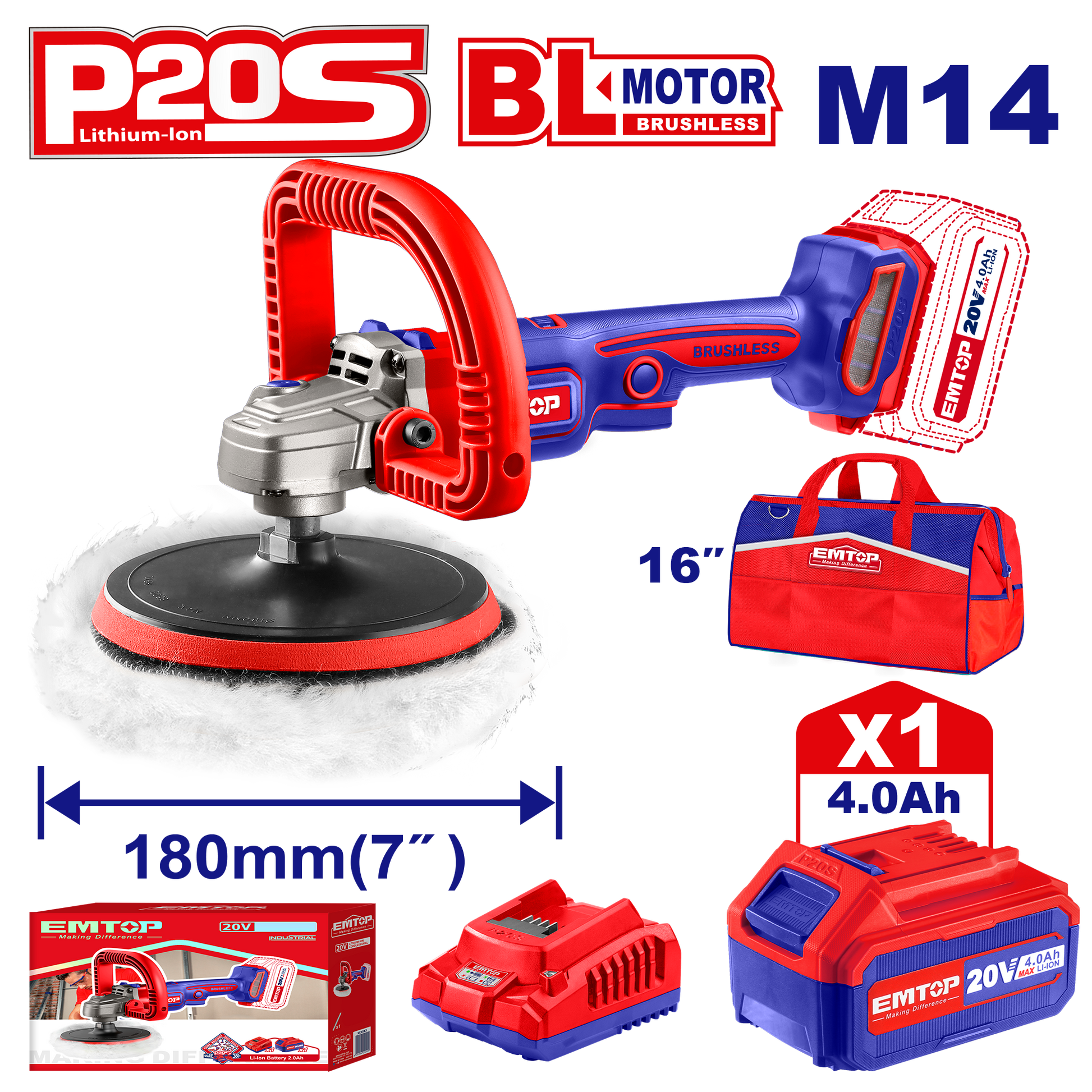 Fırçasız motorGərginlik: 20VBoş dövrə sürəti: 400-2500rpmCilalama padinin diametri: 180mmMil ipi: M14Dəyişən sürət nəzarətiDaxildir: 1 ədəd D-handle 1 ədəd hook&loop cilalama padini 1 ədəd cilalama kapotu 1 ədəd 4.0Ah batareya (EBPK20021) 1 ədəd şarj cihazı (EFCR20200)Şarj gərginliyi: 220-240V~50/60HzKanvas çantaya yığılmışdır