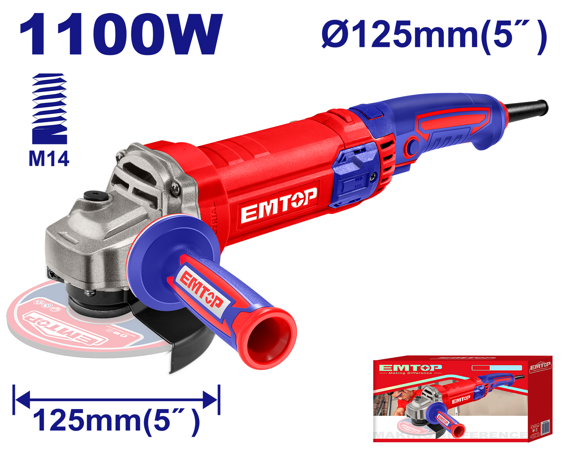 Gərginlik: 220-240V~50/60HzGiriş gücü: 1100WBoş dövrə sürəti: 12000rpmDisk diametri: 125mmMil dişi: M141 ədəd əlavə tutacaq iləDisk daxil deyilRəngli qutu ilə qablaşdırılıb