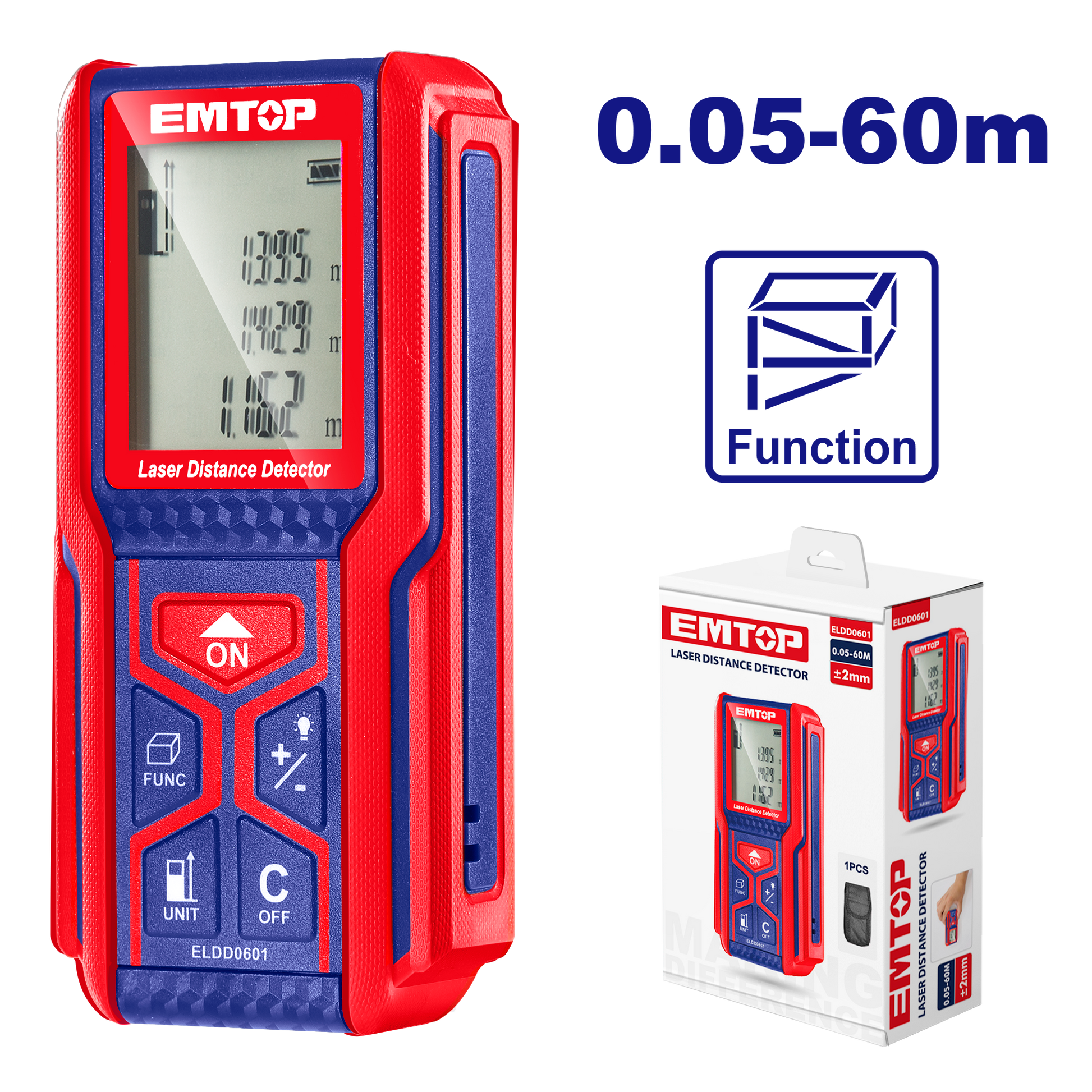 Emtop Ölçmə aralığı: 0.05-60m Ölçmə dəqiqliyi: ±2.0mm Lazer tipi: 635nm,