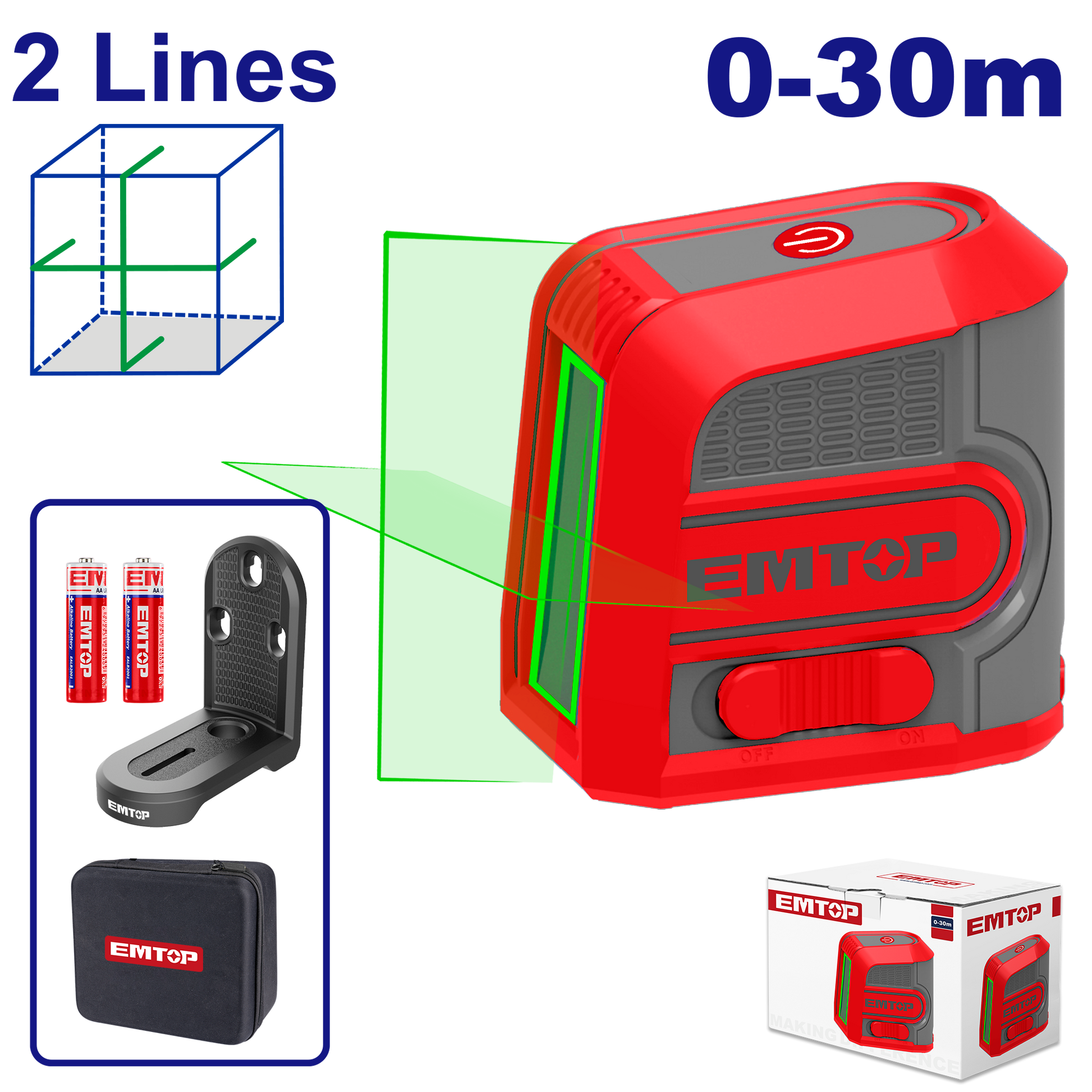 Yaşıl lazerli səviyyəölçən İşləmə diapazonu: 0~30 m Dəqiqlik: ±2 mm @ 5 m Xətt dəqiqliyi: ±2 mm @ 5 m Səviyyələmə vaxtı: ≤3 s Avtomatik səviyyələmə bucağı: ≤4° Lazer tipi: 520±5 nm Lazer sinfi: II