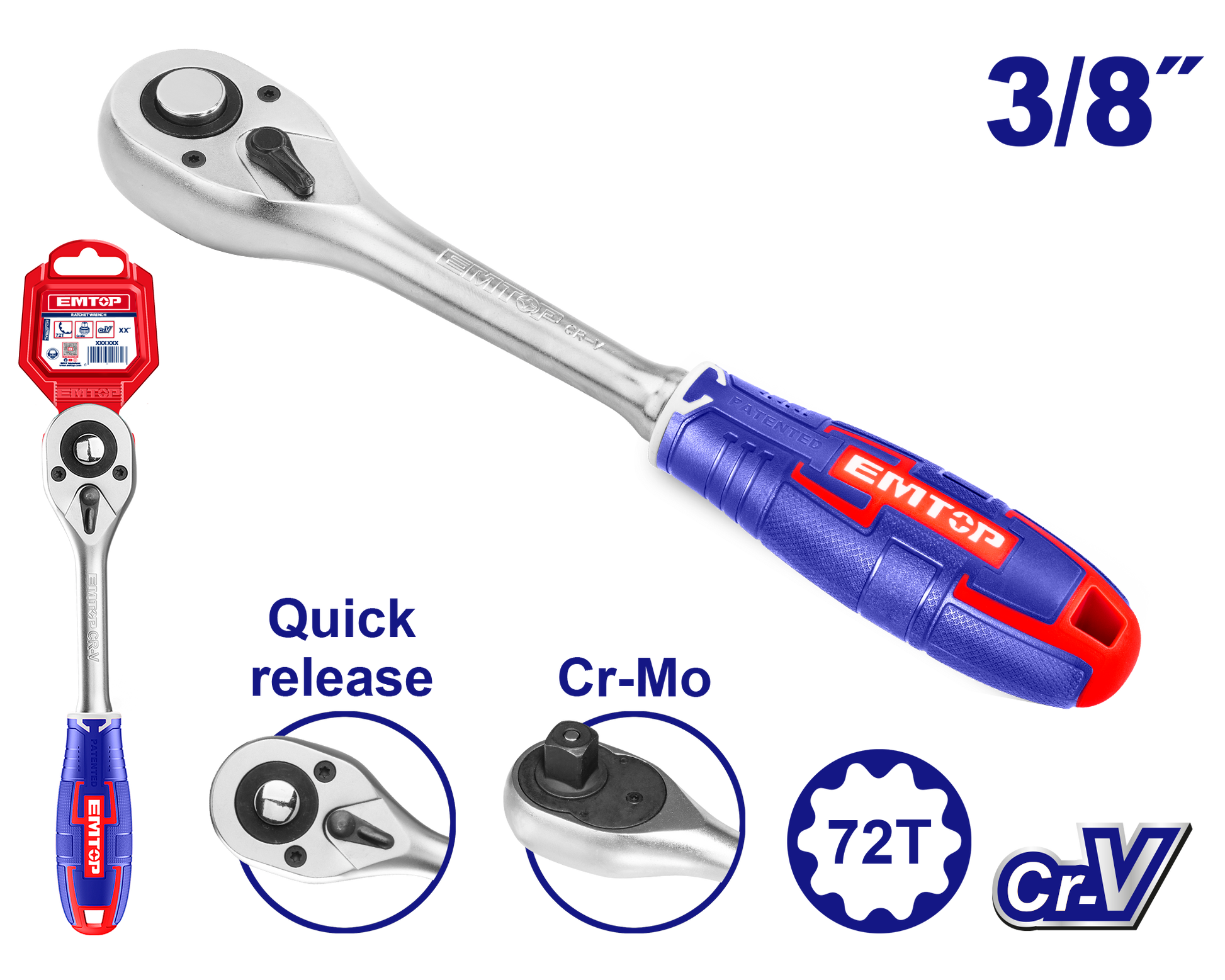 Ölçü: 3/8" 72T Uzunluq: 205 mm Material: Cr-V + CrMo İstilik müalicəsi Üzərində: Üç rəngli yumşaq tutacaq Qablaşdırma: Plastik asılqan ilə qablaşdırılmışdır