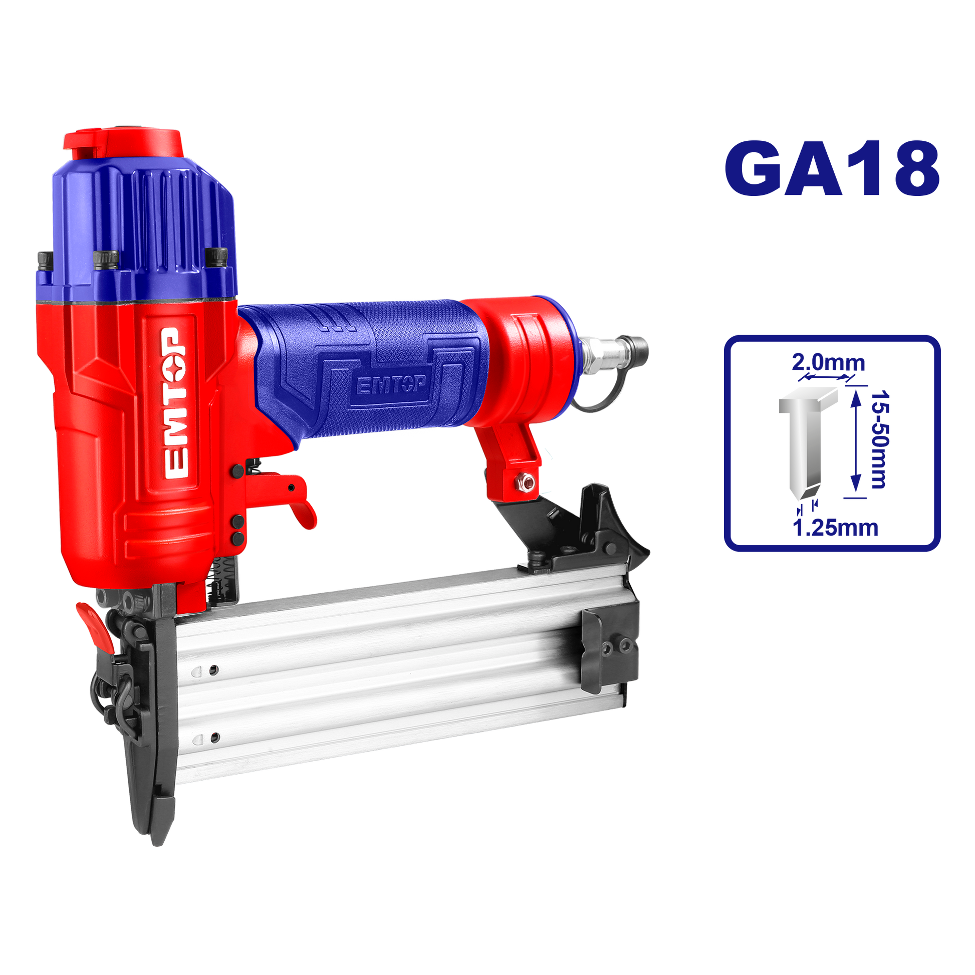 Emtop Yük tutumu: 100 ədəd Brad ölçüsü: 15-50mm Ga18, 1.25x1.00mm Tıxanmaların tez təmizlənməsi üçün sürətli açılan burun Avropa tipli bağlantı, ABŞ tipli bağlantı, Nitto tipli bağlantı və İtaliya tipli bağlantı ilə İşləmə təzyiqi: 0.4-0.7Mpa (58-101.5Psi) 1000 ədəd brad dırnaq ilə Rəngli qutuda qablaşdırılmış
