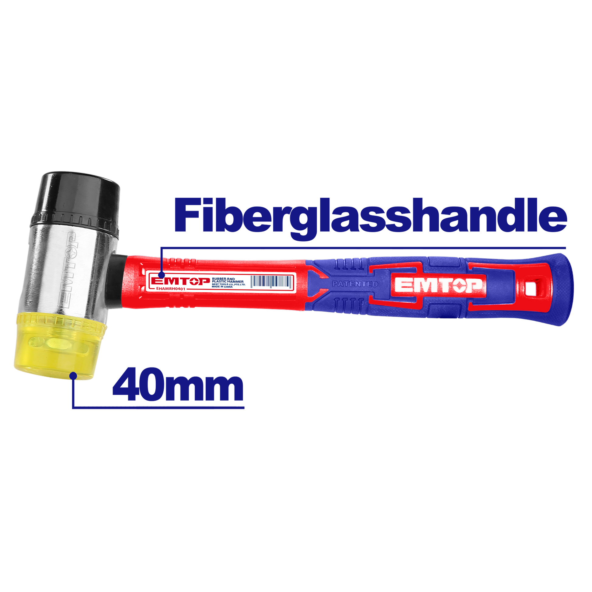 Çəkic diametri: 40mmYumşaq başlıqFunksiya: İş parçasının səthini qoruyurSap: Unikal dizaynlı şüşə lifli sapQablaşdırma: Etiketlə