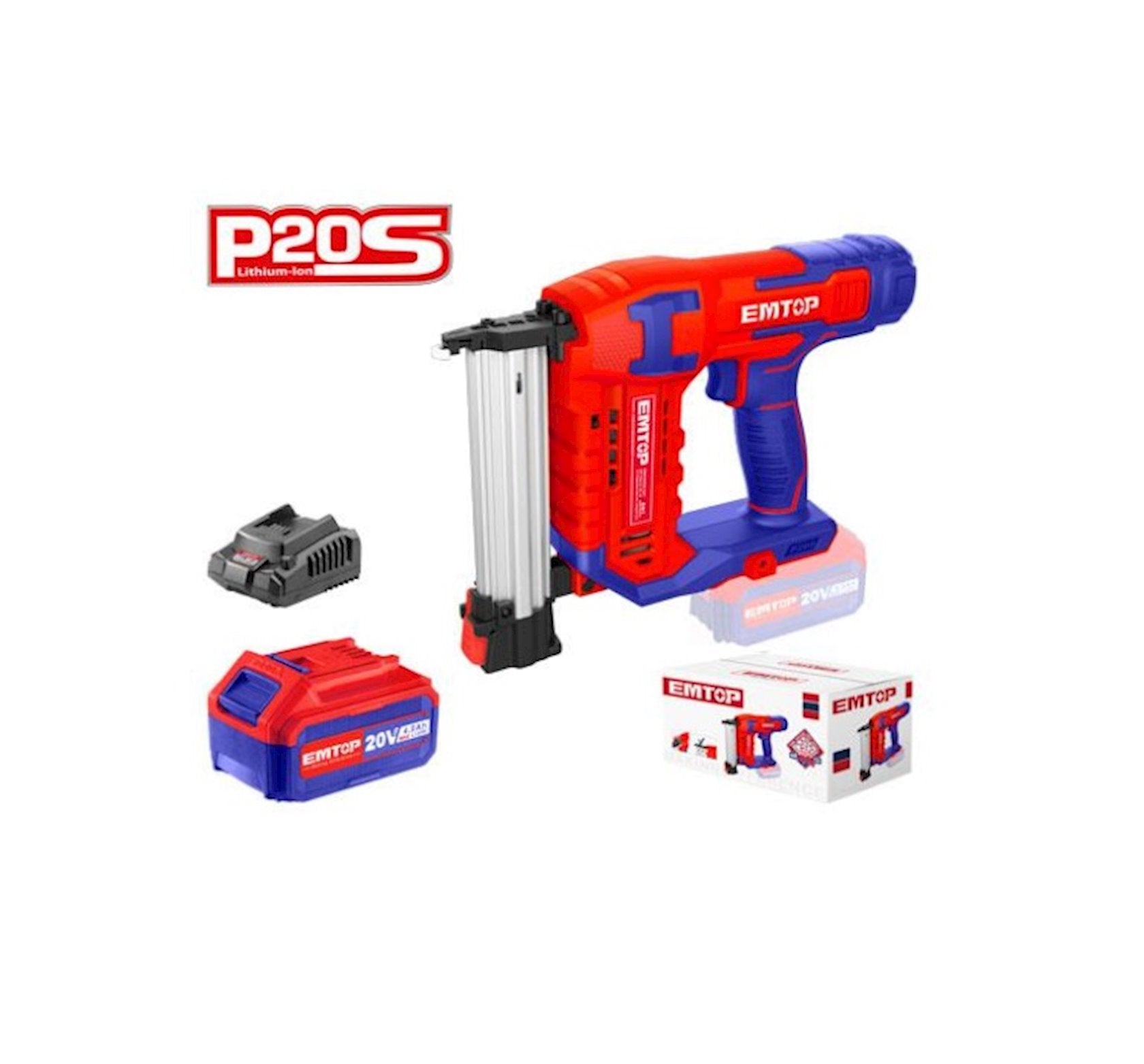 Emtop Gərginlik: 20V 2 ədəd 20V 2.0Ah batareya (EBPK20011) və 1 ədəd şarj cihazı (EFCR20200) daxildir 1 ədəd gözlük ilə təchiz olunub Dırnaq növü: F15~F35 Vurma sürəti: 3 dırnaq/saniyə Maqazin tutumu: 105 ədəd dırnaq Şarj gərginliyi: 220V-240V~50/60Hz Rəngli qutu ilə qablaşdırılıb