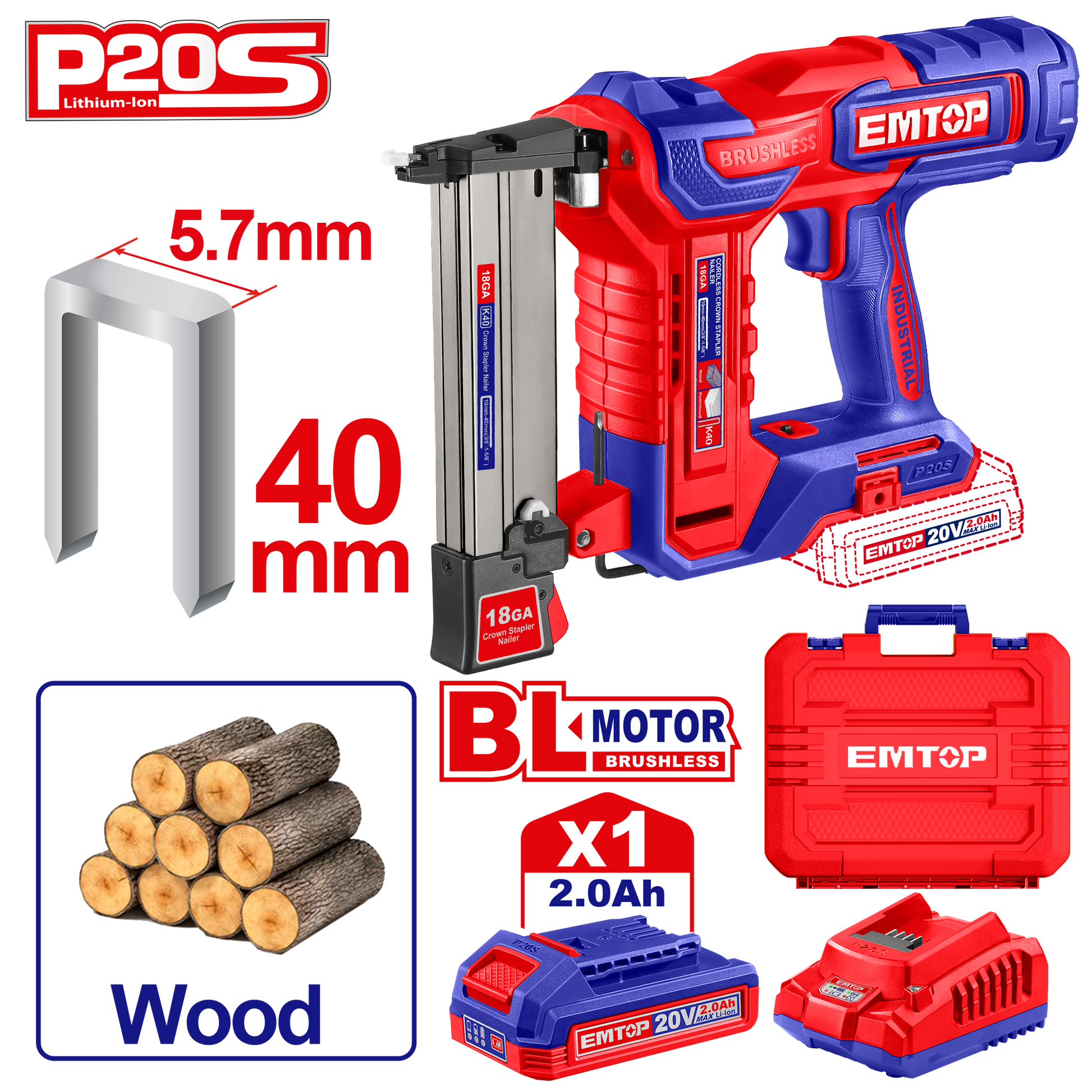Gərginlik: 20VDırnaq növü: K10~K40Sürət: 3 dırnaq/saniyəMağazin tutumu: 100 ədədFırçasız motorDaxildir: 400 ədəd taç dırnağı (40mm) 1 ədəd hava nozzle 1 ədəd pin 1 ədəd 20V 2.0AH batareya (EBPK20011) 1 ədəd şarj cihazı (EFCR20200)Şarj gərginliyi: 220-240V~50/60HzDaşıma qutusuna yığılmışdır