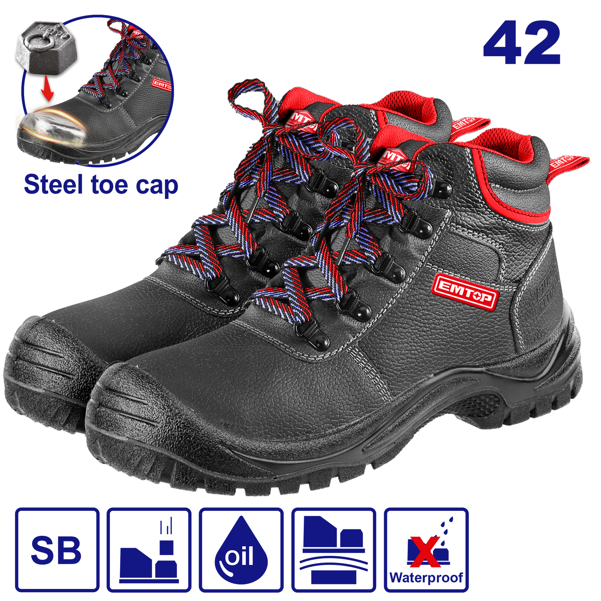 Ölçülər assortimenti: 42Mühafizə ayaqqabısı kateqoriyası: SB: polad burunluÜst material: Çatmalı dəriAltlıq: İkiqat sıxlıqlı PUQablaşdırma: Rəngli qutu