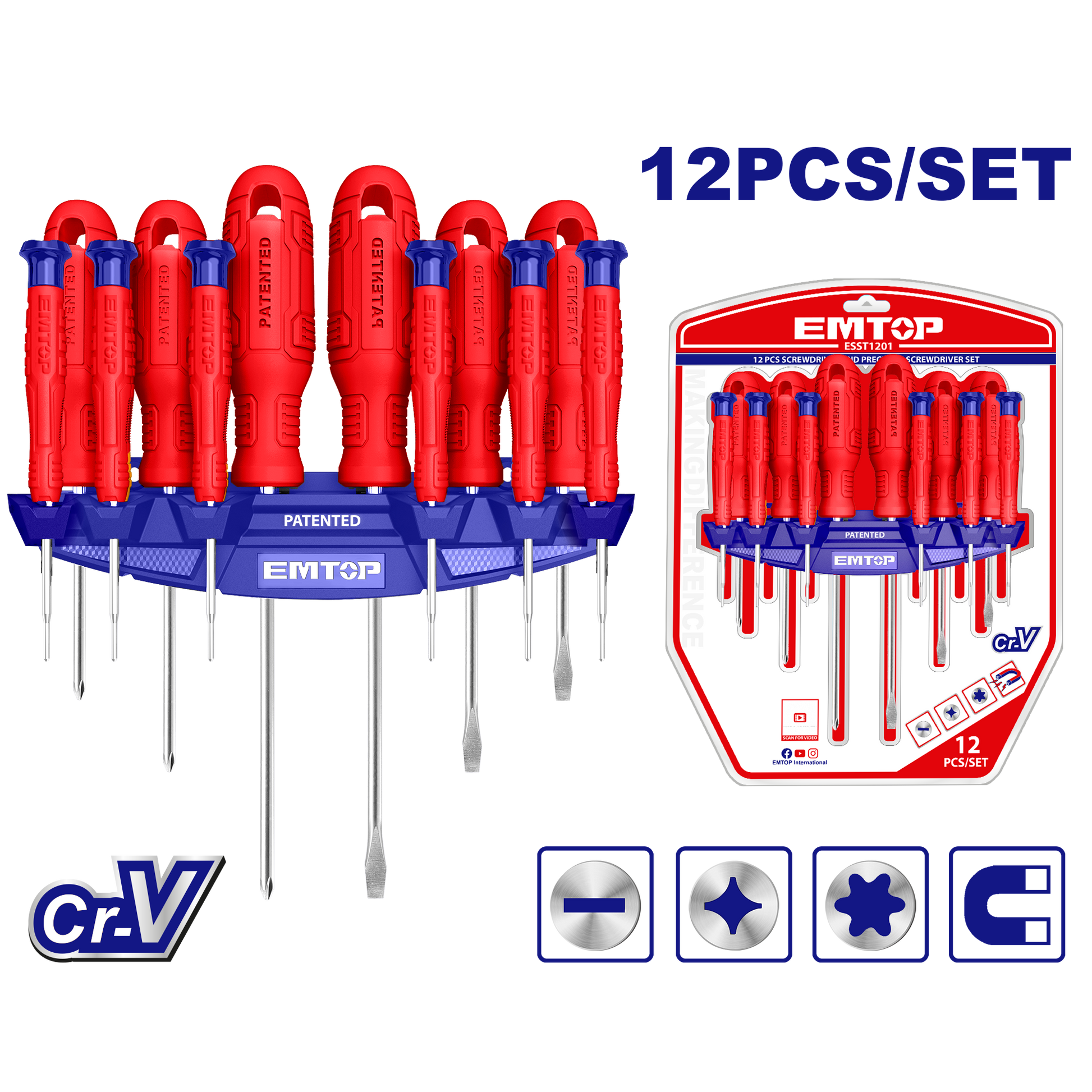 Material: CR-V, Dairəvi bıçaqMagnetləşdirilmiş ucu6 ədəd tornavida:1 ədəd SL5X75mm1 ədəd SL5X100mm1 ədəd SL6X150mm1 ədəd PH1X75mm1 ədəd PH1X100mm1 ədəd PH2X150mm6 ədəd dəqiqlik tornavidaları:SL350; PH050; T650; T850; SL250; PH0050Qablaşdırma: Plastik asqı və ikili blister ilə