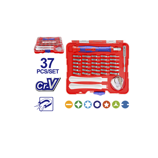 Emtop 37 ədəd dəqiq vida açarı dəsti1 ədəd sap1 ədəd 4X60mm bit saxlayıcı1 ədəd yapışdırıcı1 ədəd üçbucaq2 ədəd plastik pry bar1 ədəd kart çimidi30 ədəd 4X28mm bit:SL1.5, SL2, SL2.5, SL3, SL3.5, SL4, PH000, PH00, PH0, PH1, T4, T5, T6, T7, T8, T9, T10, T15, T20, H0.9, H1.3, H1.5, H2, H2.5, H3, H4, Y2, U2.6, Five Star0.8, Five Star1.2Five Star0.8, Five Star1.2 iPhone və iPad üçün uyğundurPlastik qutuda qablaşdırılmış