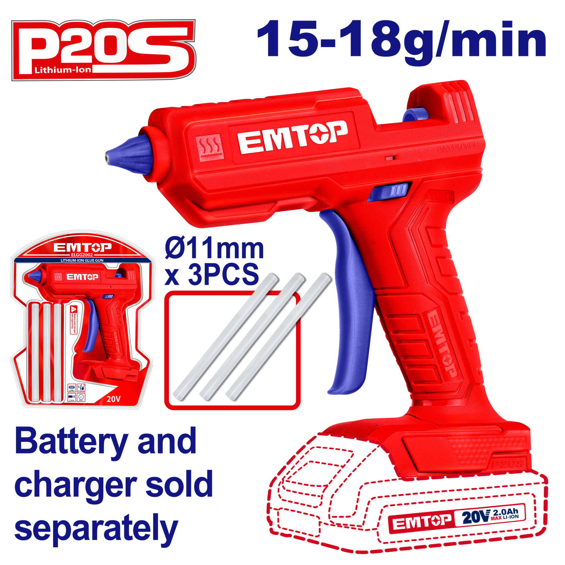 Gərginlik: 20VYapışqan tutumu: 15–18 g/dəqYapışqan çubuq diametri: 11.2 mm3 ədəd 150 mm yapışqan çubuq ilə birlikdəBatareya və şarj cihazı ayrıca satılırQablaşdırma: ikiqat blisterlə