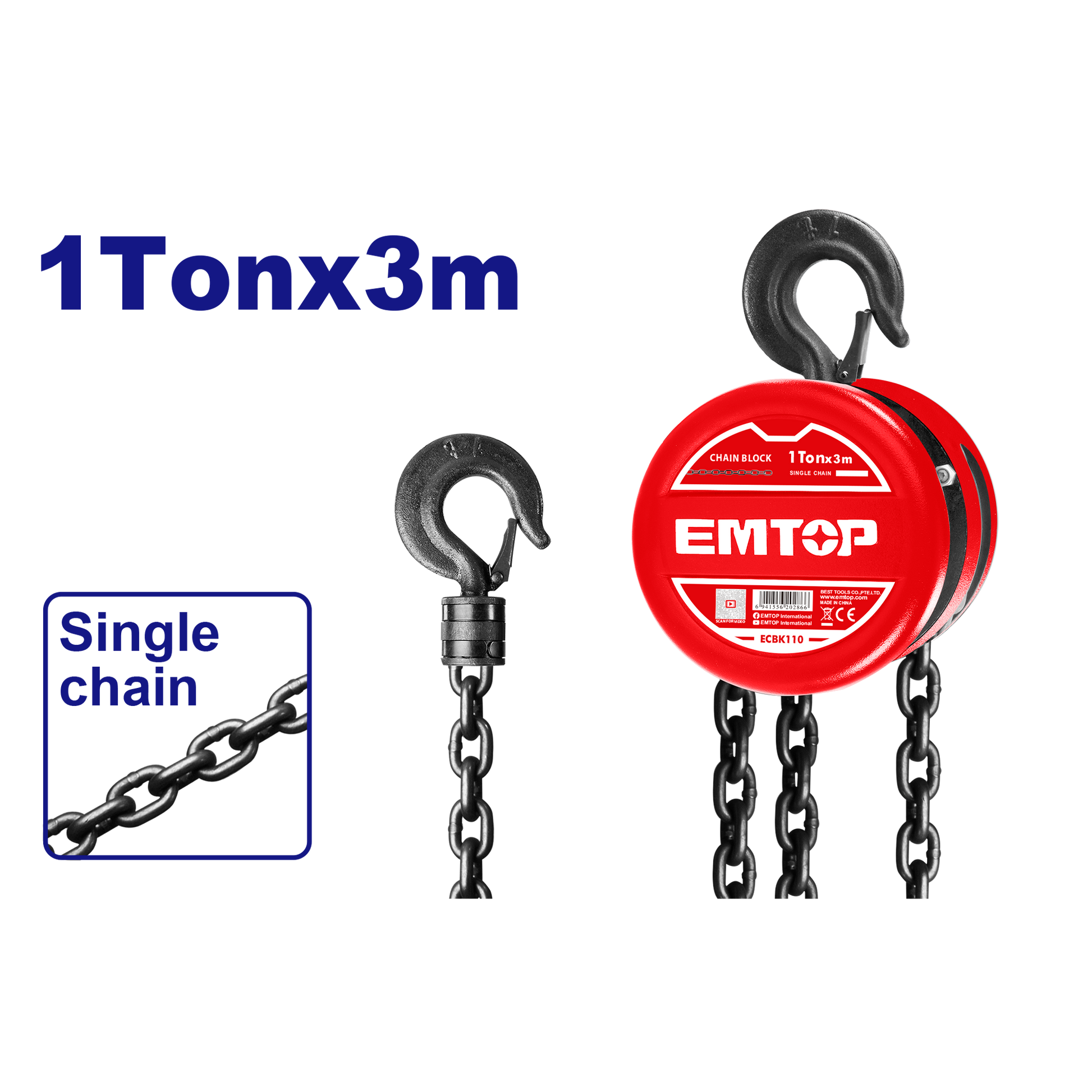 Göstərici yükü: 1 tonQaldırma hündürlüyü: 3mYük zənciri sayı: 1Qaşdan qaşa məsafə: 300mmTam yük qaldırmaq üçün zəncir çəkmə gücü: 322.5 NXalis çəki: 9.45kgQablaşdırma: Taxta qutu ilə